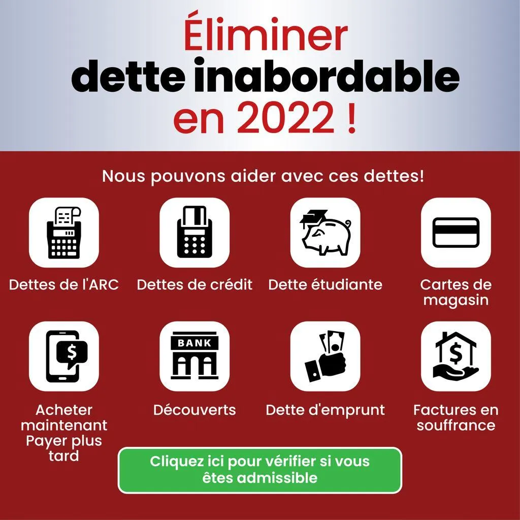 La ligne d'assistance sans dette fournit des services de marketing aux syndics agréés en insolvabilité ou aux sociétés de règlement de dettes qui travaillent avec des syndics agréés. La ligne d'assistance sans dette n'assume ni ne paie aucune dette ni ne fournit de conseils juridiques, d'allégement de dette, de règlement de dette, de gestion de dette ou de services similaires. Lorsque vous remplissez le formulaire sur cette page, un syndic autorisé en insolvabilité ou un conseiller en règlement de dettes vous contactera directement pour discuter des services qu'ils sont autorisés à fournir dans votre province ou territoire.
